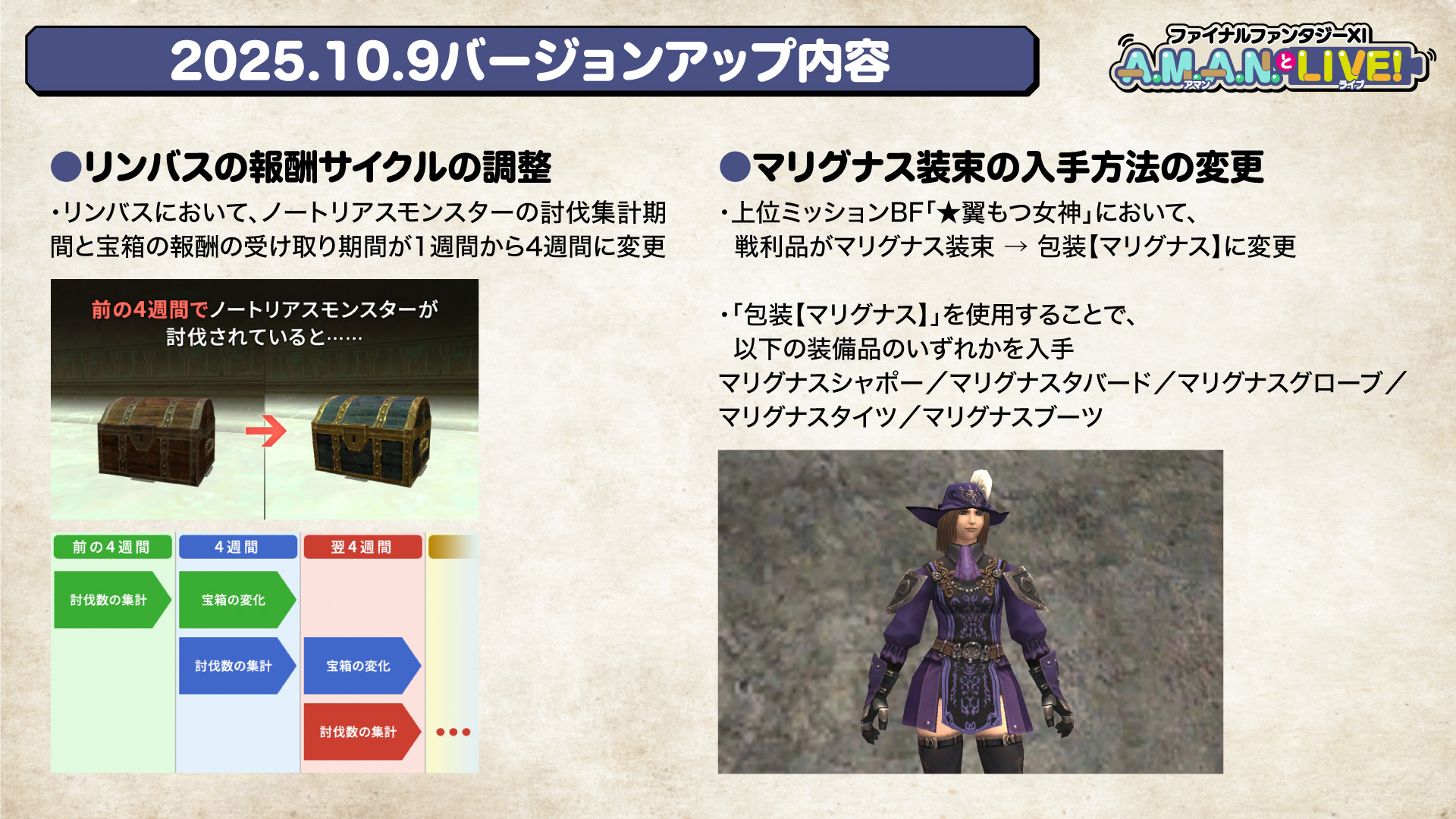 『ファイナルファンタジーXI(以下、『FFXI』)』の“いま”に注目し、さらに映像として『FFXI』という作品をアーカイブするための番組“ファイナルファンタジーXI A.M.A.N.とLIVE!(アマンとライブ!)”。その第13回が2025年10月11日に放送されました。